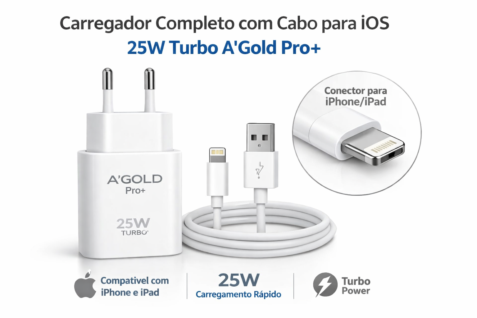 Carregador Completo Com Cabo Para IOS 25W Turbo A’Gold Pro+