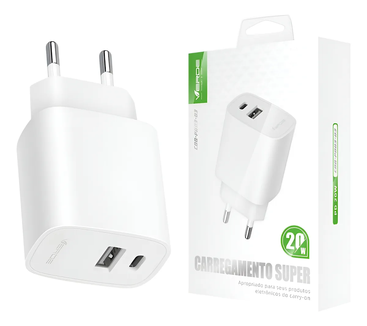 Fonte de Energia USB-C e USB-A 20W Verde